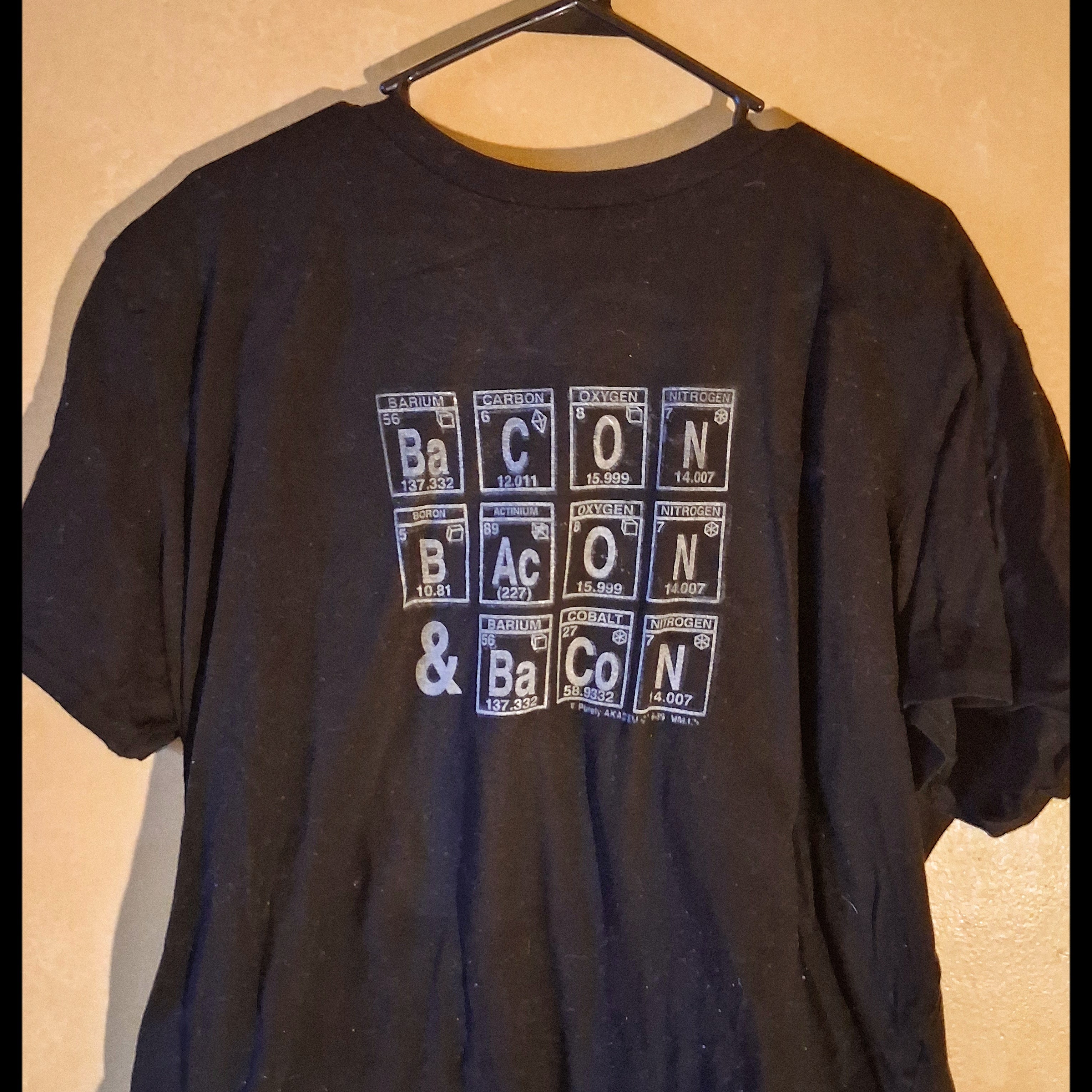 Like, oh my gosh, so there are totally cute ways to spell “bacon” with the periodic table on a t-shirt design, and they’re always, like, super fun. And, I mean, we can just, like, go through all of them, unless you’re vegan or whatever, and then you can still have, like, imitation bacon, duh. Bacon is totally from pigs, obviously.